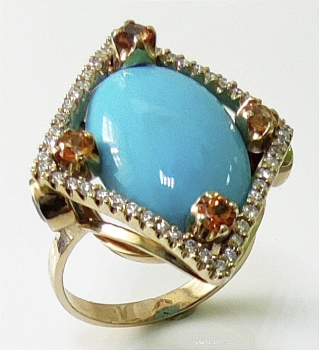 Кольцо «Эстерелла» — изысканный союз золота 750 пробы, сияющих бриллиантов, глубоких сапфиров и нежной бирюзы. Носи символ роскоши и утонченного вкуса! Каждая деталь кольца подчеркивает вашу индивидуальность и статус. Прекрасное украшение станет незабываемым подарком себе или близким. Разрешите себе красоту и элегантность высокого ювелирного искусства!