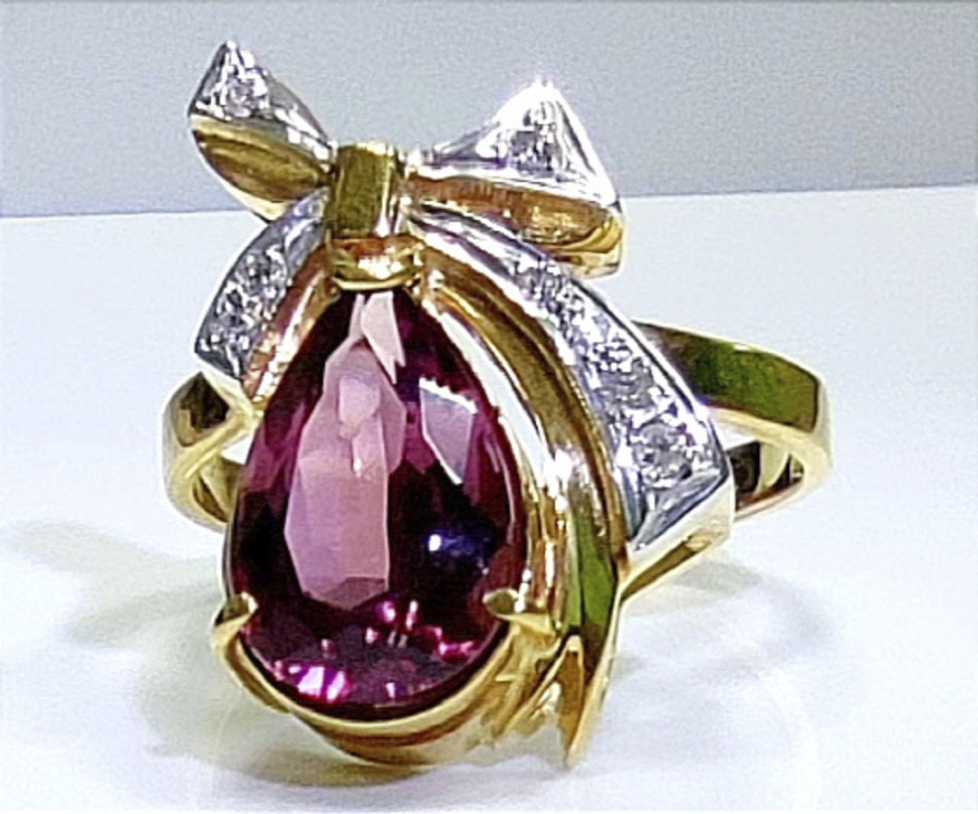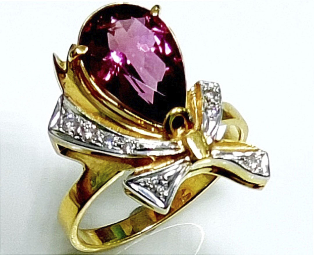 Кольцо «Эстерелла» — гармония роскоши и природной красоты! Золото 750 пробы подчеркивает статус владельца, а уникальный турмалин привлекает взгляды окружающих. Добавленный штрих – сверкающие бриллианты, символизирующие чистоту чувств и прочность отношений. Прекрасное украшение станет вашим верным спутником как в повседневной жизни, так и на торжественных мероприятиях. Сделайте выбор в пользу изысканности вместе с кольцом «Эстерелла».