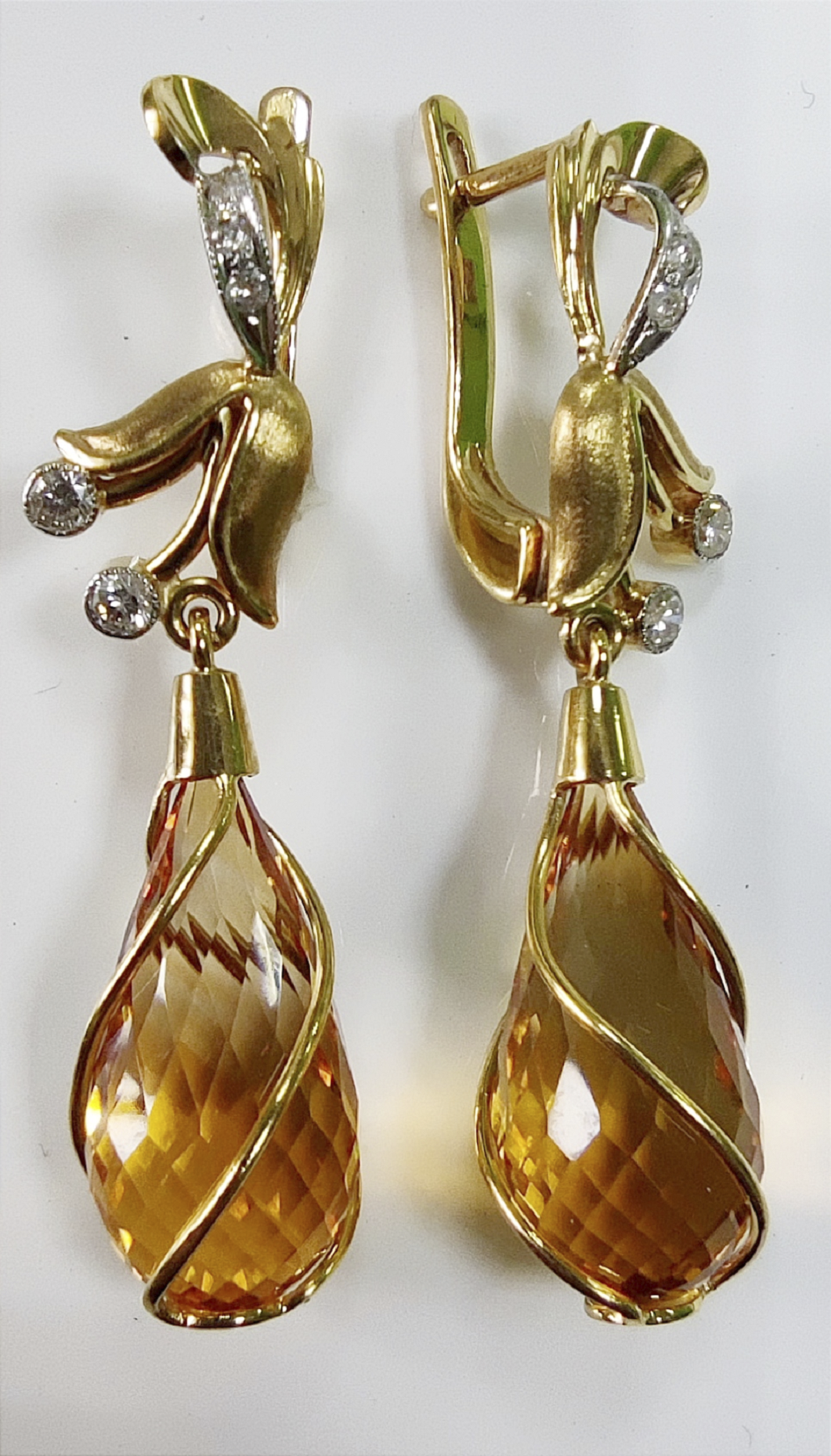 "Серьги «Эстерелла» — воплощение роскоши и элегантности! Золото 750 пробы, яркие цитрины и мерцающие бриллианты создают изысканный образ, подчеркивающий вашу индивидуальность. Этот аксессуар станет вашим верным спутником как днем, так и вечером, добавляя блеска любому наряду. Испытайте удовольствие от ношения стильного украшения премиум-класса!"